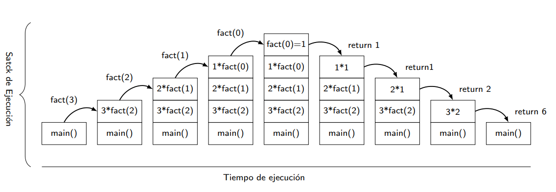 Cada vez que se llama una función, se crea un ámbito nuevo y se va apilando en el stack (o pila) de ejecución hasta que termine de ejecutarse la llamada.