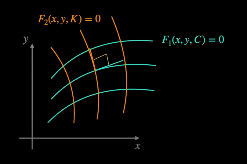 Dadas dos familias de curvas simplemente finitas, se dice que son familias ortogonales cuando, por cada punto del plano por el que pasa una curva de , también pasa una curva de y son ortogonales en ese punto.