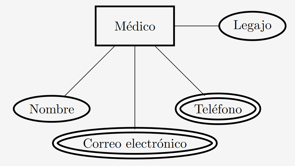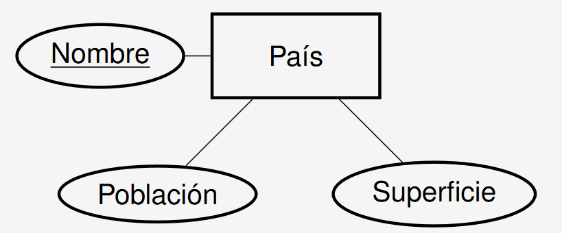 - Atributo: Propiedades de una clase, tienen un valor asociado en cada identidad. Se representa con un óvalo, conectado al tipo de entidad