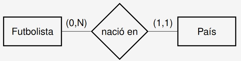 Notemos que para dos tipos de entidad cualesquiera de una interrelación ternaria, la cardinalidad de ambos lados siempre será , ya que si no fuese el caso se podría prescindir de una interrelación ternaria, y utilizar una relación binaria.