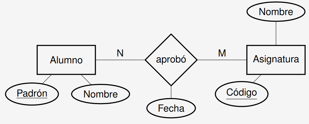 Toda entidad almacenada en la base de datos debe tener atributos clave que identifiquen inequívocamente cada entidad. En el diagrama esto se representa subrayando los atributos clave.