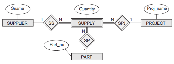 En algunas ocasiones, podemos usar una entidad débil para representar una relación ternaria
