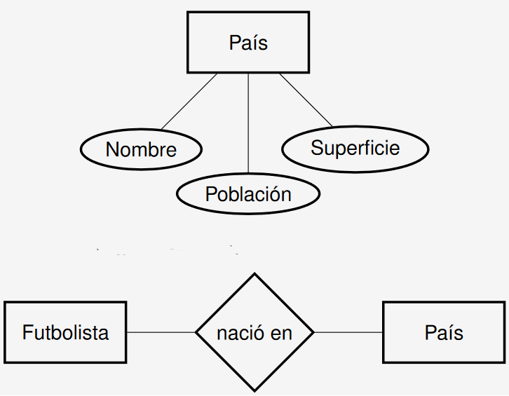 - Tipo de Entidad: Es un tipo de clase a la cual pertenecen los objetos. Se representa con un rectángulo.
