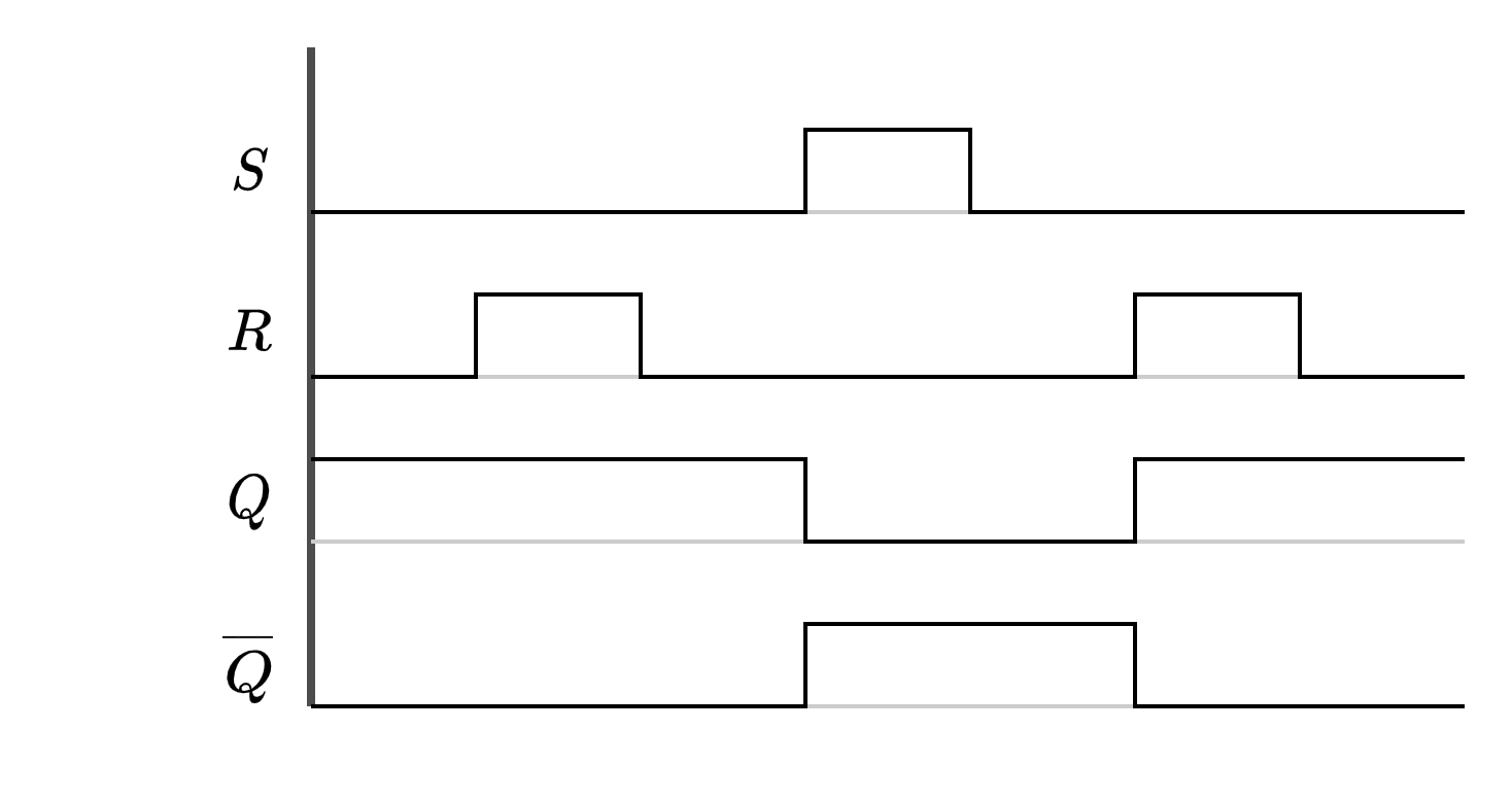 Para analizar el comportamiento de la función, debo realizar un diagrama de tiempos. Para eso, pienso las entradas como una función de tiempo (pulsos) y analizo el cambio en las variables de la función.