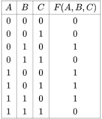 Cada función lógica tiene infinitas expresiones algebraicas que le corresponden, para eso, vamos a tratar con las expresiones canónicas. Dada la siguiente tabla de verdad, vamos a escribir su expresión algebraica de dos formas distintas.