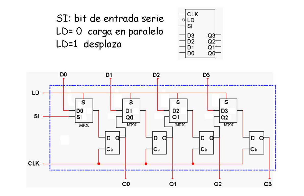 Permite que todos los datos se carguen a la vez a partir de multiplexores, además, se puede utilizar la salida en serie para convertir una entrada de datos en paralelo a una entrada de datos en serie.