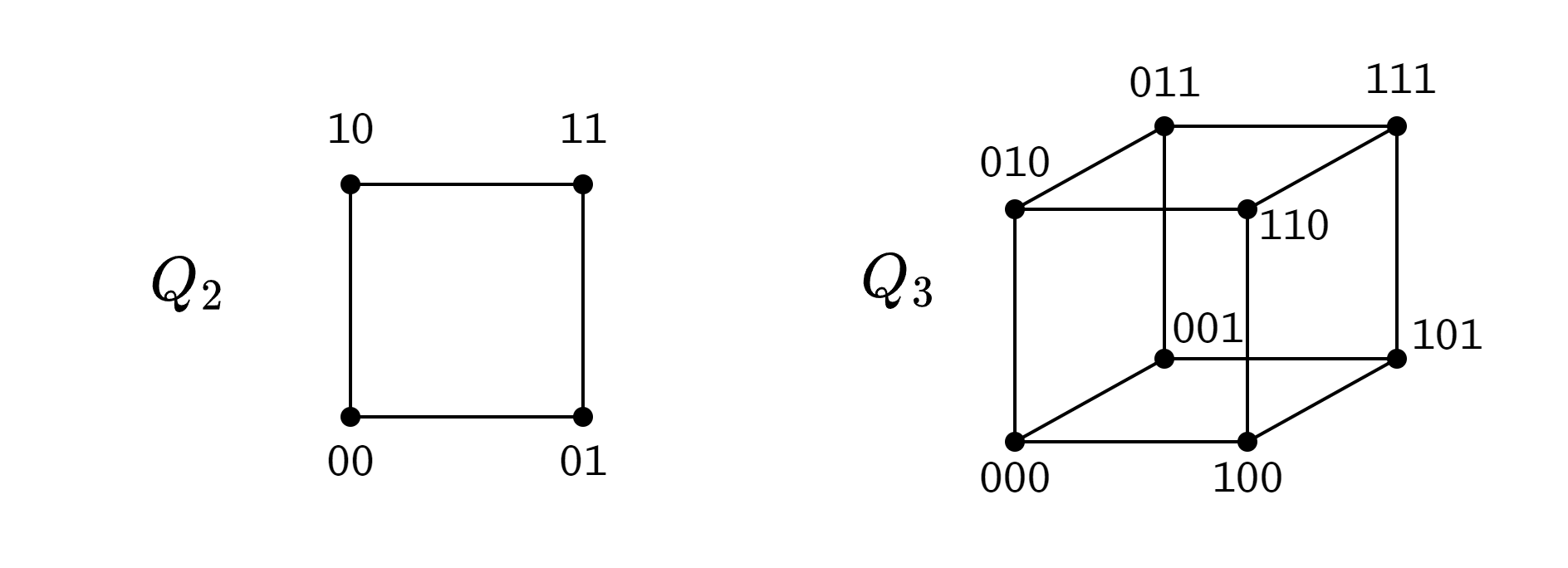 Grafo con vértices. Los vértices se etiquetan con una cadena binaria de dígitos, con una arista si la distancia hamming es 1. Alternativamente, puede pensarse con el producto cartesiano de veces