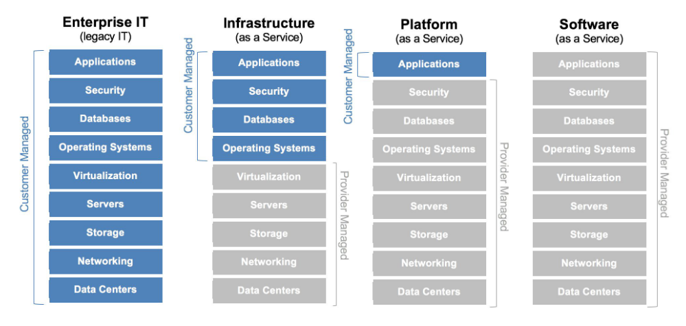 - IaaS (Infrastructure as a Service): Ofrece almacenamiento y virtualización de equipos. Permite definir redes y técnicas de adaptación para capacidad frente a cargas.