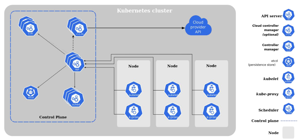 - Autoscaler: Es un componente que tiene capacidad para incrementar (scale in) o decrementar (scale out) las instancias del sistema, a partir de métricas de su funcionamiento.