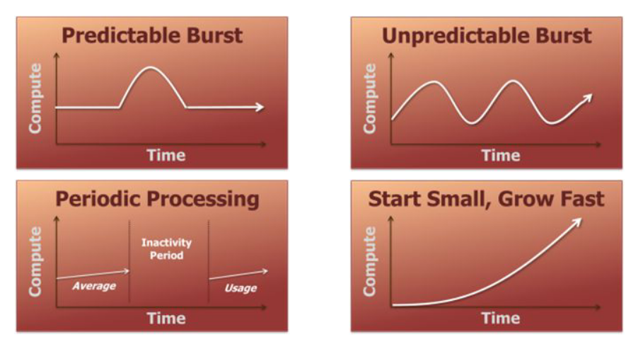 - Predictable Burst: Se conoce que en cierto determinado momento, la carga en el sistema aumentará, como por ejemplo: Navidad.