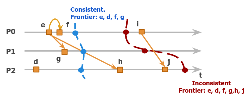 Se dice que un corte es consistente si por cada evento que contiene, también contiene a aquellos que ocurren antes: