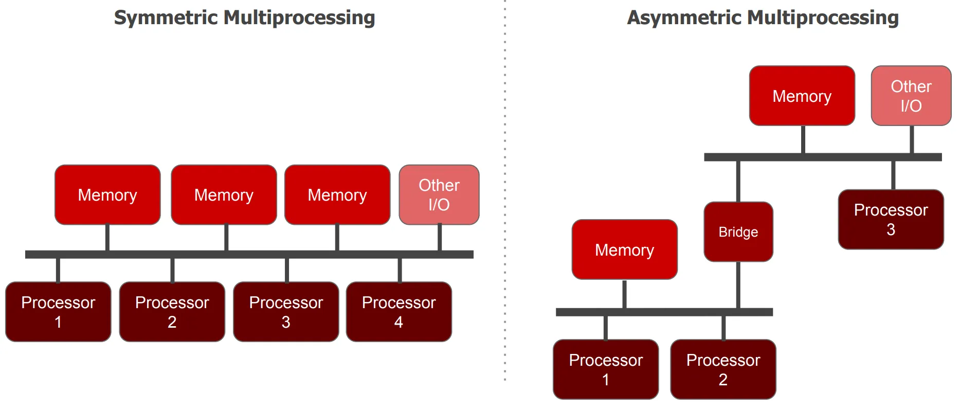 El sistema puede contar con una única CPU (el caso más común), o con múltiples CPU, que se comunican a través de un bus para acceder a recursos compartidos. Esto puede generar complicaciones.