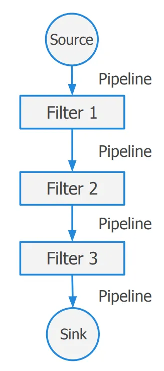 Esta arquitectura también se conoce como “pipes and filters”. Es utilizado bastante en los sistemas operativos de tipo Unix