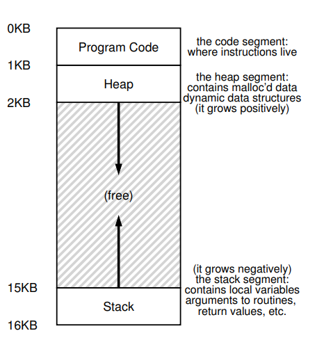 Lo que se está describiendo es las abstracciones del mapa de memoria que provee el sistema operativo a un programa corriendo.