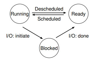 Existen otros estados en los que un proceso puede estar, pero esta es una simplificación. Los estados son: unused, embryo, sleeping, runnable, running, zombie.