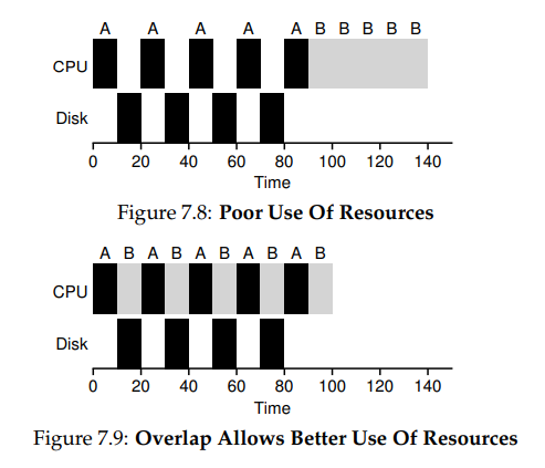 Cuando incorporamos este elemento, debemos tener en cuenta algunas cosas. Cuando un proceso inicia un pedido de I/O, entonces este se bloquea esperando a que el pedido finaliza. En estos casos, el procesador probablemente deba cambiar de proceso y ejecutar otro mientras tanto.